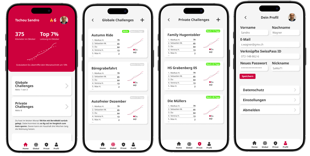 Das Konzept verknüpft Punkte, Challenges, Streaks und soziale Vergleiche mit dem täglichen Mobilitätsverhalten. So entsteht eine Lösung, die Nutzer:innen auf motivierende Weise begleitet und gleichzeitig den Modal Shift unterstützt.