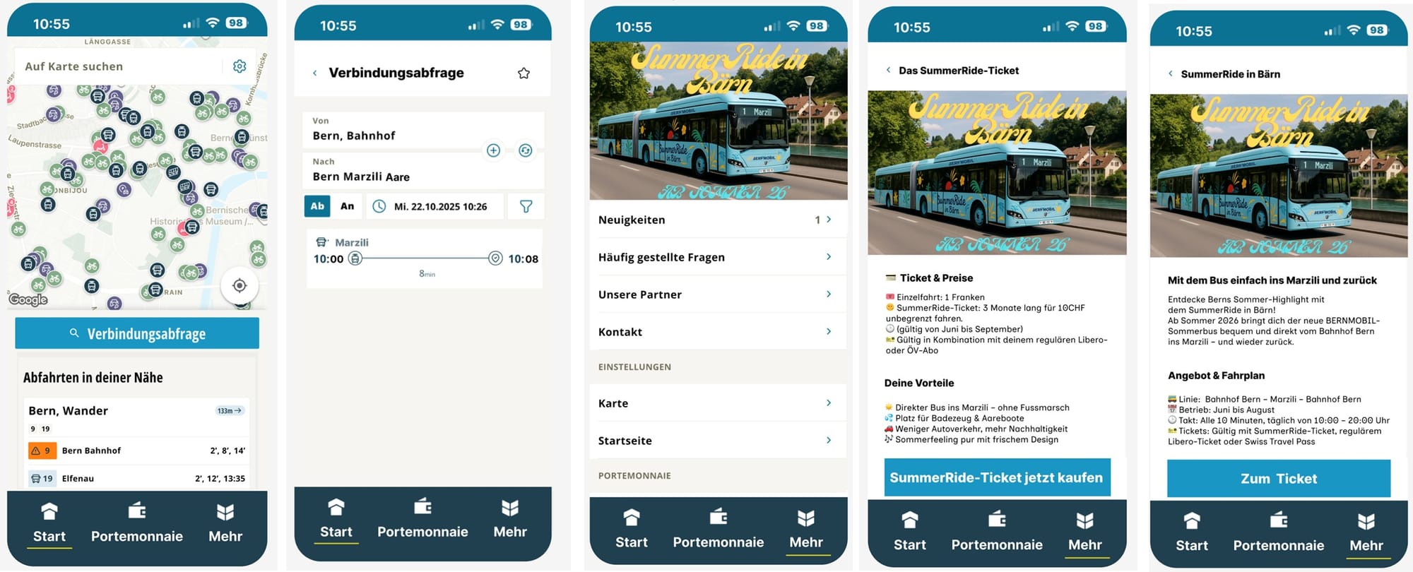 Schnell, digital, günstig und perfekt für Badegäste und Aareböötler ist SummerRide in Bärn, das neue Sommerangebot von BERNMOBIL. Ein Konzept, das Freizeitmobilität nachhaltig verändert. Dabei geht es nicht nur um eine praktische Verbindung, sondern auch darum ein positives öV-Erlebnis zu schaffen, das die Fahrgäste begeistert und sie langfristig bindet.